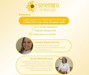 Unidade São João Batista/Nova Era promove ações do Setembro Amarelo pela saúde mental dos trabalhadores da saúde