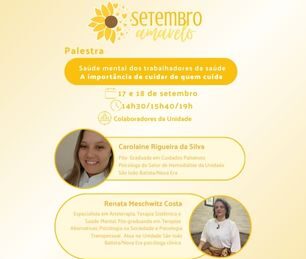 Unidade São João Batista/Nova Era promove palestras de conscientização sobre o Setembro Amarelo